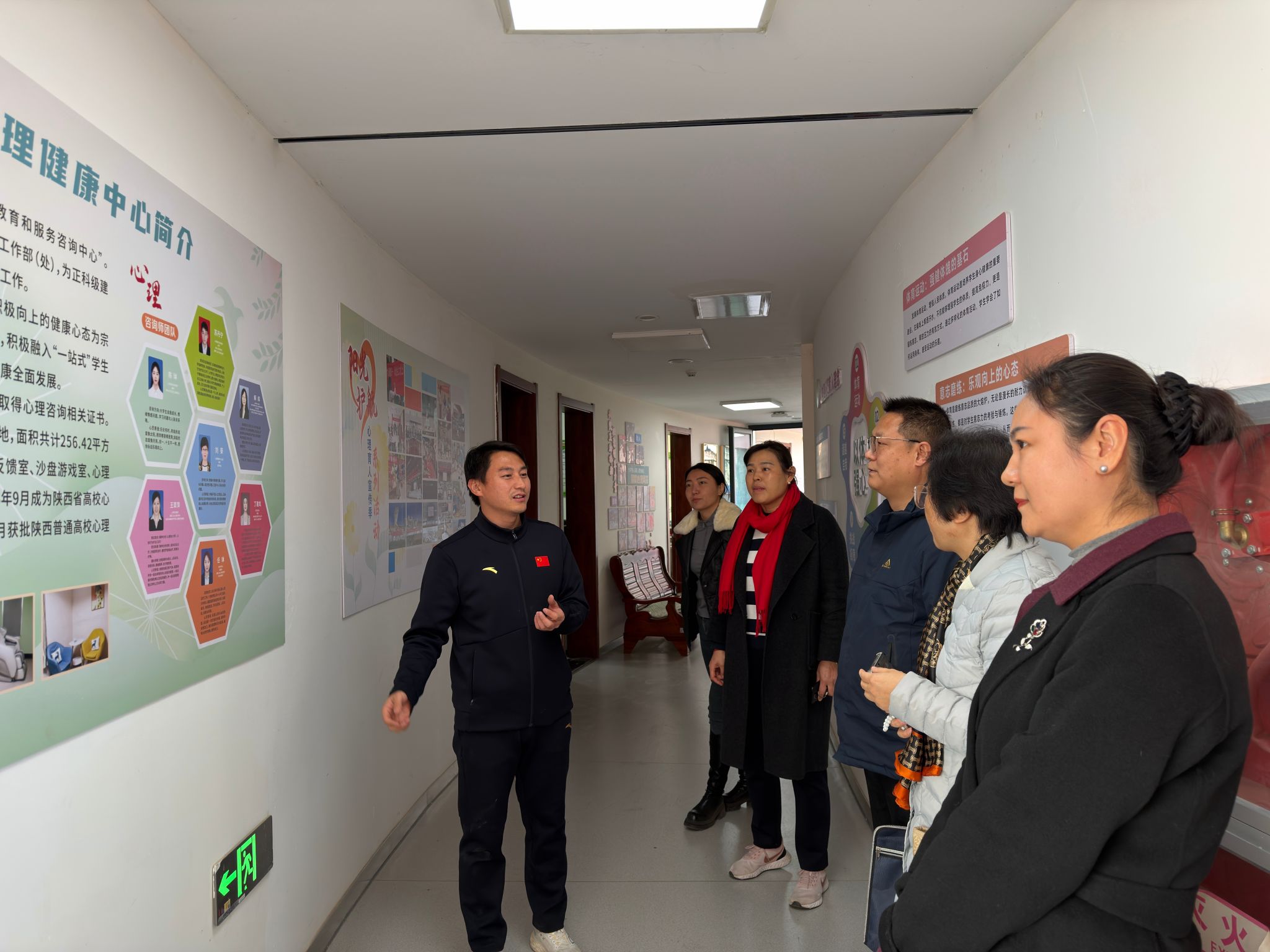在西安體育學院學工同仁的陪同下,我校一行首先參觀了“一站式”學生社區(qū)心理健康教育中心。中心功能齊全、環(huán)境溫馨,將心理健康教育、咨詢干預、團體活動、放松減壓有機融合于學生生活區(qū)域,實現(xiàn)了心理育人工作的前置與下沉。