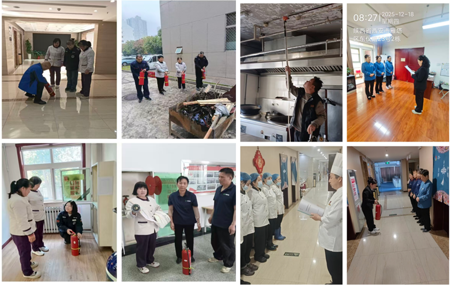 堅持日常排查,守好安全陣地。學(xué)院(培訓(xùn)中心)高度重視冬季校園安全工作,每周組織第三方聚焦學(xué)員高頻活動區(qū)域進行安全檢查,對天然氣閥門、鍋爐房、電梯、電路安全、食品加工規(guī)范及消防設(shè)施等安全關(guān)鍵環(huán)節(jié)進行專項排查,對員工安全意識和應(yīng)急處置能力進行日常培訓(xùn)。定期對各區(qū)域滅火器等消防設(shè)施進行檢查,對即將過期的滅火器聯(lián)系保衛(wèi)處進行維護,本學(xué)期更換和維修了204個滅火器。