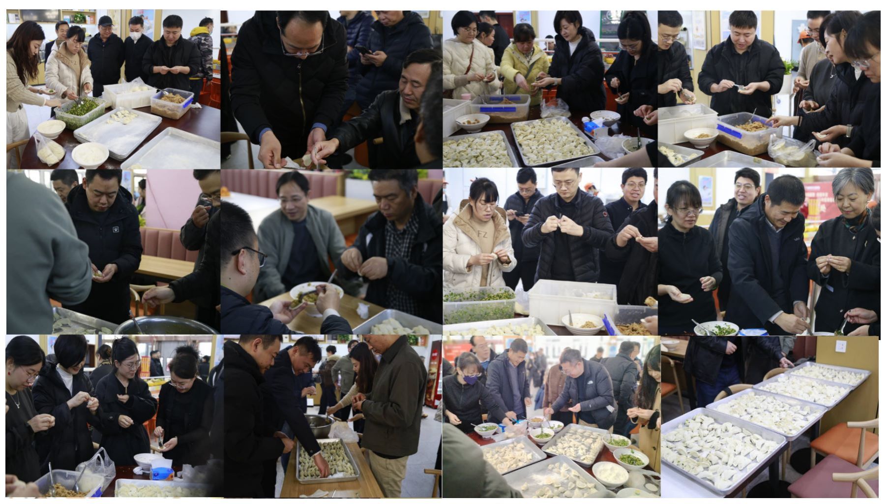 隨后,活動(dòng)進(jìn)入“聚力協(xié)作?手作團(tuán)圓”包餃子環(huán)節(jié)。教職工們熱情高漲,紛紛圍聚在操作臺(tái)旁,分工協(xié)作、各展所長(zhǎng),揉面、搟皮、包餡、捏邊,動(dòng)作嫻熟,配合默契。大家一邊交流著包餃子的技巧與心得,一邊暢談工作與生活,現(xiàn)場(chǎng)歡聲笑語(yǔ)不斷。通過(guò)親手勞作與緊密協(xié)作,老師們不僅體驗(yàn)了傳統(tǒng)美食制作的樂(lè)趣,更在輕松愉快的氛圍中增進(jìn)了了解,深化了同事情誼,讓冬日的餐廳充滿了暖意。