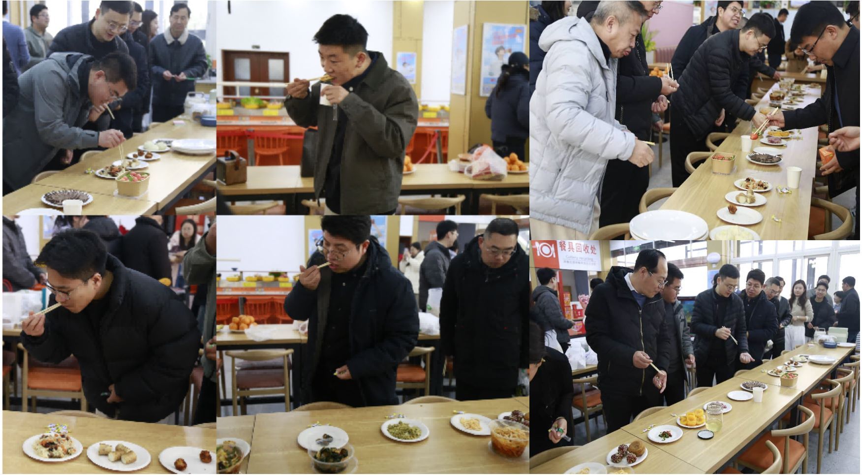 當(dāng)熱氣騰騰的餃子陸續(xù)出鍋,搭配著老師們帶來(lái)的各色美味,一場(chǎng)豐盛的“百家宴”正式開(kāi)席。大家圍坐一堂,共享親手包制的勞動(dòng)成果,品鑒各具特色的百家風(fēng)味。除了舌尖上的盛宴,活動(dòng)現(xiàn)場(chǎng)特別設(shè)置的“幸運(yùn)餃子獎(jiǎng)”更添驚喜。最終,這份幸運(yùn)由帶來(lái)“氣泡雙脆”與“藍(lán)莓熔巖雪山”兩道佳肴的賈慧老師摘得。同時(shí),工會(huì)還專門(mén)為14位監(jiān)考老師預(yù)留了冬至水餃。驚喜與歡樂(lè)持續(xù)升溫,進(jìn)一步濃厚了節(jié)日氛圍。