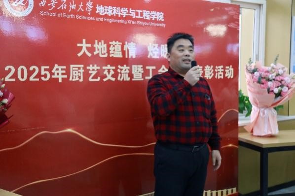 為厚植中華優(yōu)秀傳統(tǒng)文化底蘊(yùn),積極踐行學(xué)?!皥F(tuán)結(jié) 勤奮 求是 創(chuàng)新”的校風(fēng)精神,弘揚(yáng)地球科學(xué)與工程學(xué)院“大地情懷、勘探精神”的學(xué)科文化內(nèi)核,持續(xù)推進(jìn)“幸福西石大”建設(shè),著力營(yíng)造溫馨和諧的“家”文化氛圍,12月19日上午,地球科學(xué)與工程學(xué)院工會(huì)在雁塔校區(qū)學(xué)生餐廳成功舉辦“大地蘊(yùn)情?烴暖冬至”廚藝交流暨工會(huì)年度表彰活動(dòng)。校工會(huì)副主席王鈞、學(xué)院黨委書(shū)記高黎、院長(zhǎng)宋立軍等與全院95名教職工歡聚一堂,共敘同事情誼,共慶年度佳績(jī)。學(xué)院工會(huì)主席李愛(ài)榮主持活動(dòng)。