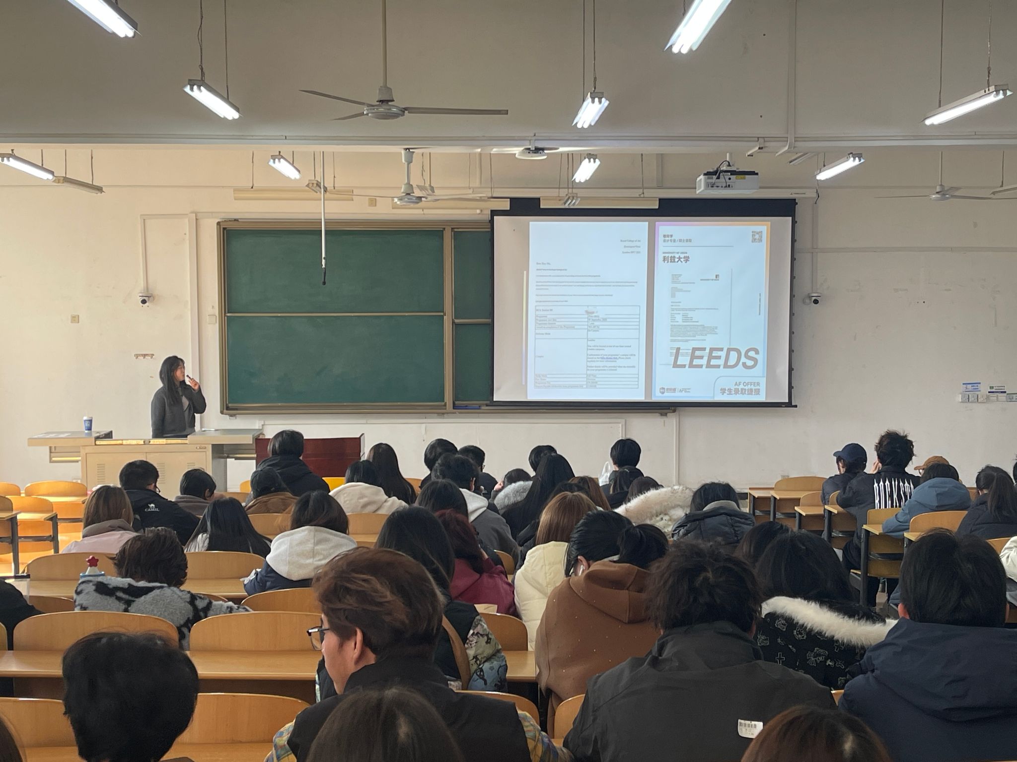 為幫助設計類專業(yè)學生了解留學規(guī)劃、掌握海外藝術院校申請要領,12月16日下午,人文學院于博思樓B123教室舉辦設計類職業(yè)規(guī)劃系列講座之留學篇。本次講座以“拿下利茲大學藝術碩士,我做對了這幾件事”為主題,特邀現已成功獲得利茲大學與皇家藝術學院碩士錄取的視覺傳達專業(yè)2022級學生穆子鈺擔任主講,吸引了設計類專業(yè)學生的積極參與。