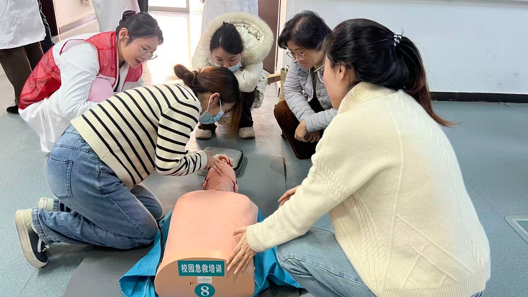 實操練習環(huán)節(jié),學員們分組踴躍參訓,在培訓師手把手指導下,借助模擬人道具和專業(yè)器材反復練習胸外按壓、人工呼吸、AED操作等關鍵技能。培訓師對每位學員的動作進行細致點評與糾正,確保操作標準規(guī)范,現場學習氛圍濃厚有序。經系統(tǒng)學習和嚴格考核,合格學員將獲得紅十字救護員證書。參訓教職工紛紛表示,此次培訓組織周密、內容扎實,有效增強了自身安全意識和應急處突能力,未來將把所學知識運用到工作和生活中,爭做校園安全的積極宣傳者和可靠守護者。