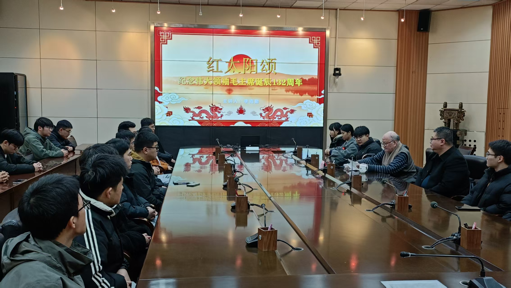12月26日下午,在雁塔校區(qū)會議中心第二會議室,離退休教職工李克勤書記以“紅太陽頌”為主題,在紀(jì)念偉大領(lǐng)袖毛澤東主席誕辰132周年之際,為機械工程學(xué)院研究生代表奉獻(xiàn)了一場兼具思想性、指導(dǎo)性與趣味性的分享會,由離退休工作處副處長趙海濤主持。