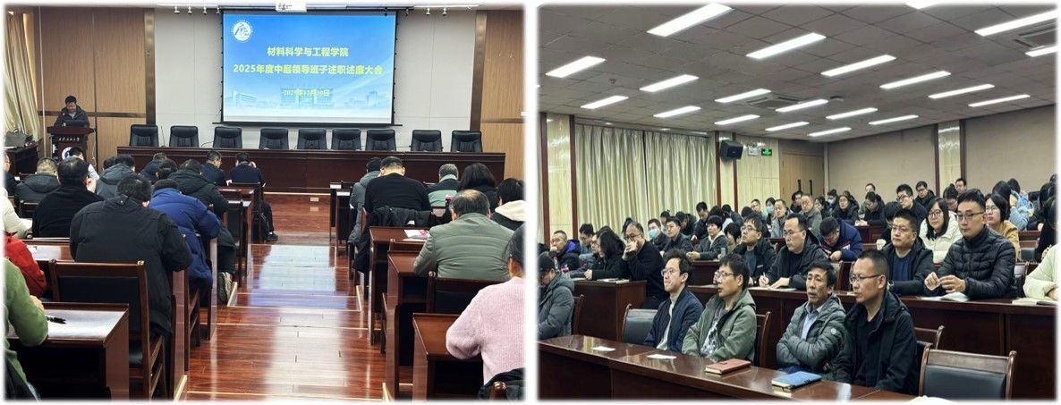 12月30日上午,材料科學與工程學院在雁塔校區(qū)第五會議室召開2025年度中層領導班子述職述廉大會。學院黨委書記耿嶺主持會議,全院教職工參加會議。本次會議以“凝心聚力謀發(fā)展,踔厲奮發(fā)新征程”為主題,全面回顧和總結了學院2025年在黨建工作、科研創(chuàng)新、學科建設、人才培養(yǎng)等領域取得的突破性進展,并對進一步推動學院各項事業(yè)高質量發(fā)展作出動員部署。