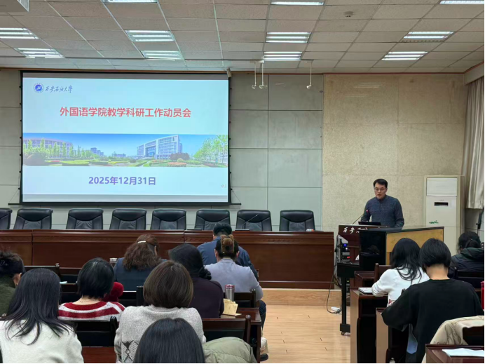 為進(jìn)一步激發(fā)教師隊(duì)伍創(chuàng)新活力,推動(dòng)學(xué)院學(xué)科建設(shè)與科研成果實(shí)現(xiàn)新突破,12月31日下午,外國(guó)語(yǔ)學(xué)院在雁塔校區(qū)第三會(huì)議室召開教學(xué)科研工作動(dòng)員會(huì)暨外語(yǔ)學(xué)科向區(qū)域國(guó)別學(xué)科轉(zhuǎn)型報(bào)告會(huì)。學(xué)院領(lǐng)導(dǎo)班子成員、各系部負(fù)責(zé)人及全體教師參加會(huì)議。會(huì)議由學(xué)院黨委書記張建高主持。