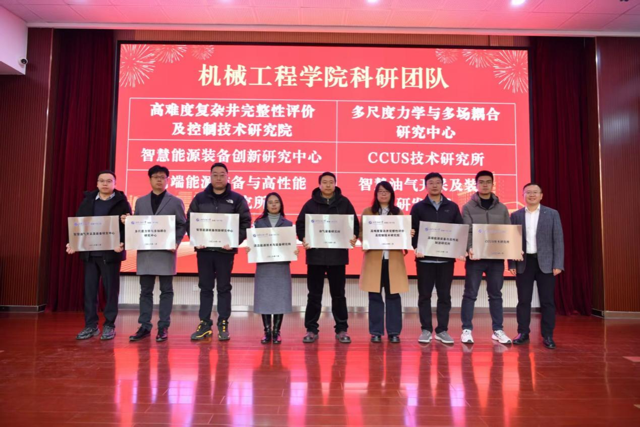 為推動學科交叉與有組織科研,學院成立了高難度復雜井完整性評價及控制技術(shù)研究院、多尺度力學與多場耦合研究中心、智慧能源裝備創(chuàng)新研究中心、智慧油氣開采及裝備研發(fā)中心、CCUS技術(shù)研究所、高端能源裝備與高性能制造研究所、清潔能源技術(shù)與裝備研究所、油氣裝備研究所,學院院長劉少胡為8個研究機構(gòu)授牌。