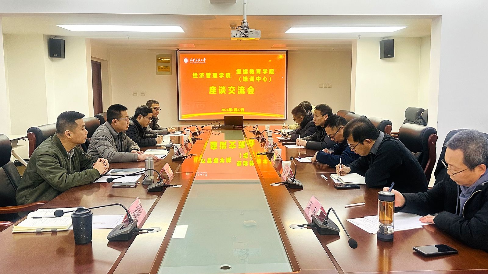 為充分發(fā)揮校內(nèi)優(yōu)質(zhì)資源,探索繼續(xù)教育與校內(nèi)學院教學科研深度融合發(fā)展新模式,1月27日下午,繼續(xù)教育學院(培訓中心)與經(jīng)濟管理學院在明德校區(qū)召開合作發(fā)展座談交流會。經(jīng)濟管理學院黨委書記張凌寒、院長吳勛及班子成員,繼續(xù)教育學院(培訓中心)院長(主任)林紅先及班子成員出席座談會。林紅先主持會議。