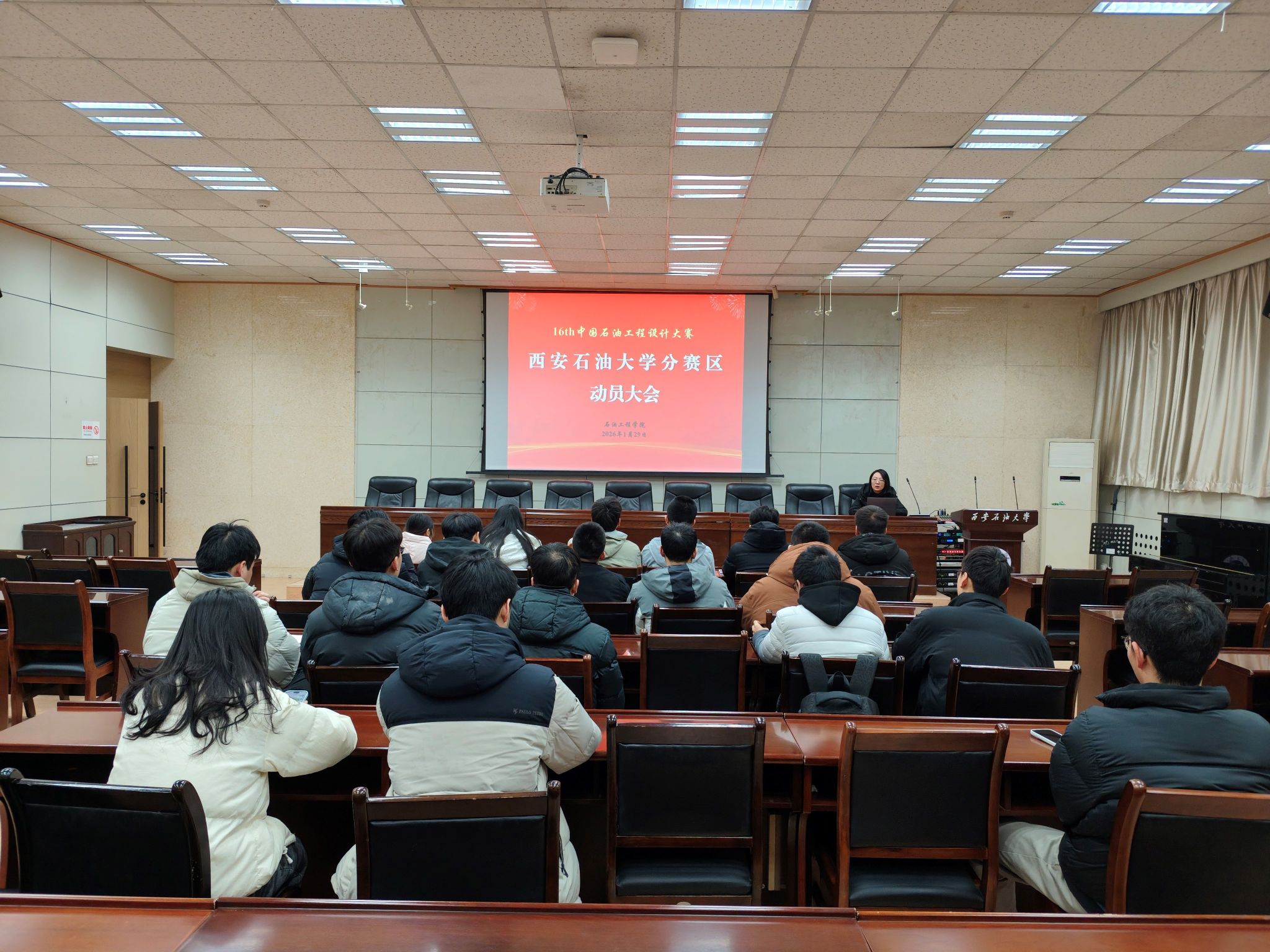 隨后,王小香老師圍繞第十六屆中國石油工程設計大賽的賽程安排、主題方向、規(guī)則變化及評審要點進行了系統解讀,并對學院在賽事組織、培訓安排和資源保障等方面的整體部署作了詳細說明。她從團隊組建、參賽策略、方案設計到成果答辯等關鍵環(huán)節(jié)提出了針對性建議,進一步增強了同學們的備賽信心和參賽針對性。