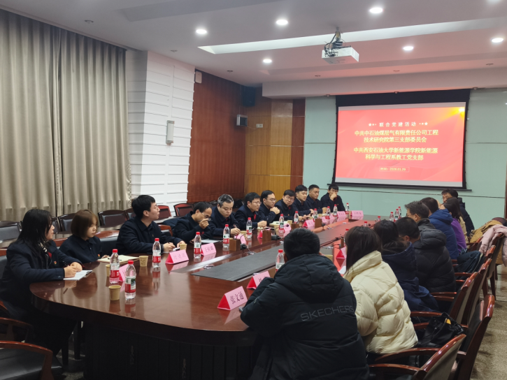 1月29日,中石油煤層氣有限責(zé)任公司工程技術(shù)研究院第三黨支部走進(jìn)校園,與新能源科學(xué)與工程系教工黨支部聯(lián)合開(kāi)展了主題為“黨建引領(lǐng),業(yè)務(wù)互促”的支部共建活動(dòng)。此次活動(dòng)旨在通過(guò)校企深度聯(lián)動(dòng),探索黨建與科研教學(xué)深度融合的新路徑。煤層氣公司工程技術(shù)研究院院長(zhǎng)郝鵬程、一級(jí)工程師孫斌,新能源學(xué)院黨委書記顏庭星、石油工程學(xué)院副院長(zhǎng)張明、新能源科學(xué)與工程系教工黨支部書記王洋及雙方黨員代表等20余人參加此次活動(dòng)。