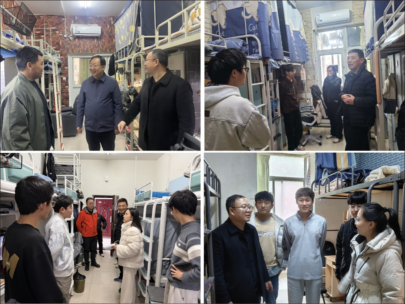 在鄠邑校區(qū),學(xué)院黨委書記孟開元、院長(zhǎng)劉少胡一行先后走訪了學(xué)院本科生宿舍,重點(diǎn)了解學(xué)生假期生活狀態(tài)和開學(xué)感受,傾聽同學(xué)們關(guān)于校園學(xué)習(xí)和生活方面的意見建議,并叮囑大家盡快調(diào)整開學(xué)狀態(tài),認(rèn)真做好新學(xué)期學(xué)習(xí)、考研和就業(yè)規(guī)劃,不斷提升個(gè)人專業(yè)素養(yǎng)和綜合能力,特別是要遵守學(xué)校宿舍管理規(guī)定,進(jìn)一步增強(qiáng)防火防盜防詐和安全用電意識(shí),以飽滿的精神狀態(tài)投入到新學(xué)期的學(xué)習(xí)生活中。