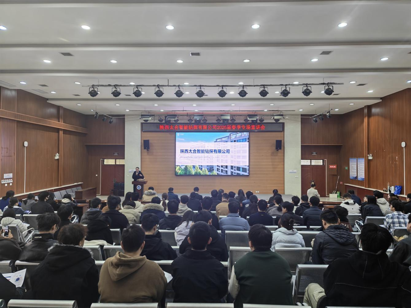 3月10日上午,陜西太合智能鉆探有限公司2026屆畢業(yè)生校園專場招聘會暨人才聯(lián)合培養(yǎng)宣講會在我校鄠邑校區(qū)崇文樓118報告廳順利舉行。陜西太合智能鉆探有限公司相關(guān)負(fù)責(zé)人、技術(shù)專家與招聘團(tuán)隊(duì)到場,學(xué)校就業(yè)創(chuàng)業(yè)指導(dǎo)中心、相關(guān)院系學(xué)生工作負(fù)責(zé)人、畢業(yè)班輔導(dǎo)員及280余名畢業(yè)生參加活動。