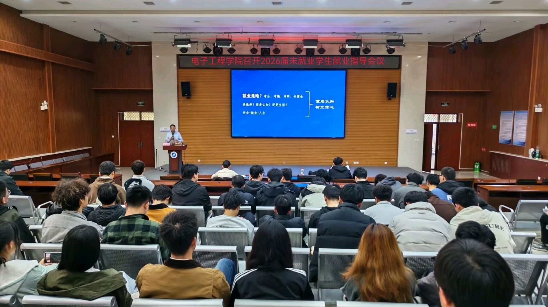 為扎實推進2026屆畢業(yè)生就業(yè)工作,幫助未就業(yè)學生明晰就業(yè)方向、樹立正確擇業(yè)觀,3月11日下午,電子工程學院在鄠邑校區(qū)崇文樓118室召開2026屆未就業(yè)學生就業(yè)指導動員會議。學校學生工作部(處)副部(處)長、就業(yè)創(chuàng)業(yè)指導中心副主任楊生強受邀作專題就業(yè)指導講座,學院畢業(yè)班輔導員錢宇航、張零及200余名未就業(yè)畢業(yè)生參加會議。