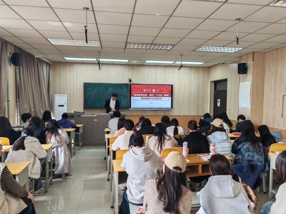 人文學(xué)院組織研究生開展主題黨團(tuán)日活動(dòng),深入學(xué)習(xí)貫徹2026年全國兩會(huì)精神,領(lǐng)會(huì)“十五五”開局之年戰(zhàn)略部署,引導(dǎo)全體研究生堅(jiān)定理想信念、勇?lián)蒲袌?bào)國使命。學(xué)院扎實(shí)推進(jìn)學(xué)習(xí)走深走實(shí),分為個(gè)人自學(xué)與班級(jí)集中學(xué)習(xí)兩個(gè)階段。個(gè)人自學(xué)階段,學(xué)院統(tǒng)一向全體研究生下發(fā)政府工作報(bào)告、兩會(huì)重要講話原文及權(quán)威解讀資料,研究生結(jié)合科研學(xué)習(xí)實(shí)際開展常態(tài)化自學(xué),均完成規(guī)定學(xué)習(xí)內(nèi)容,形成良好學(xué)習(xí)氛圍,兩名研究生提前撰寫心得體會(huì)用于集中交流。學(xué)院以班級(jí)為單位召開集中學(xué)習(xí)會(huì)議,由黨支部書記領(lǐng)學(xué),逐段研讀報(bào)告原文并結(jié)合權(quán)威網(wǎng)站進(jìn)行深度解讀,幫助同學(xué)們精準(zhǔn)把握核心內(nèi)涵與實(shí)踐要求。同時(shí)圍繞“兩會(huì)精神與青年擔(dān)當(dāng)”“科研創(chuàng)新與國家需求”開展交流研討,大家結(jié)合自學(xué)體會(huì)、科研進(jìn)展與職業(yè)規(guī)劃分享感悟。系列活動(dòng)進(jìn)一步深化了研究生們對(duì)兩會(huì)精神與“十五五”部署的理解,堅(jiān)定聽黨話、跟黨走的信念,顯著增強(qiáng)科研報(bào)國、勇?lián)鷷r(shí)代使命的責(zé)任意識(shí),切實(shí)推動(dòng)兩會(huì)精神入腦入心、見行見效。