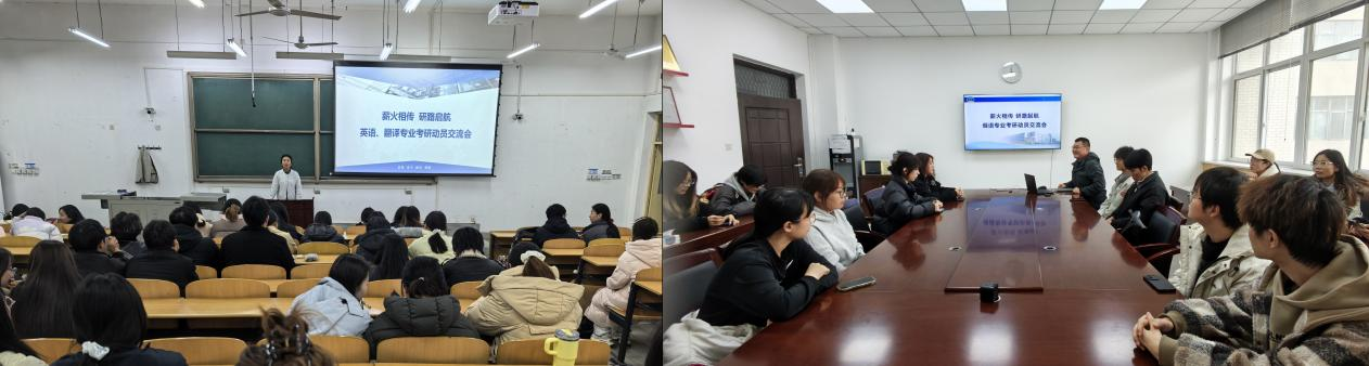 為助力學生明晰考研方向、掌握備考方法,破解備考困惑,營造勤學善研、互幫互助的優(yōu)良學風。3月19日,外國語學院精準對接不同專業(yè)學生需求,分場次舉辦“薪火相傳,研路啟航”考研動員交流會。其中,英語、翻譯專業(yè)專場在B114教室舉行,俄語專業(yè)專場在崇文樓314會議室同步開展,年級輔導員及各專業(yè)備考學生參加了本次活動。