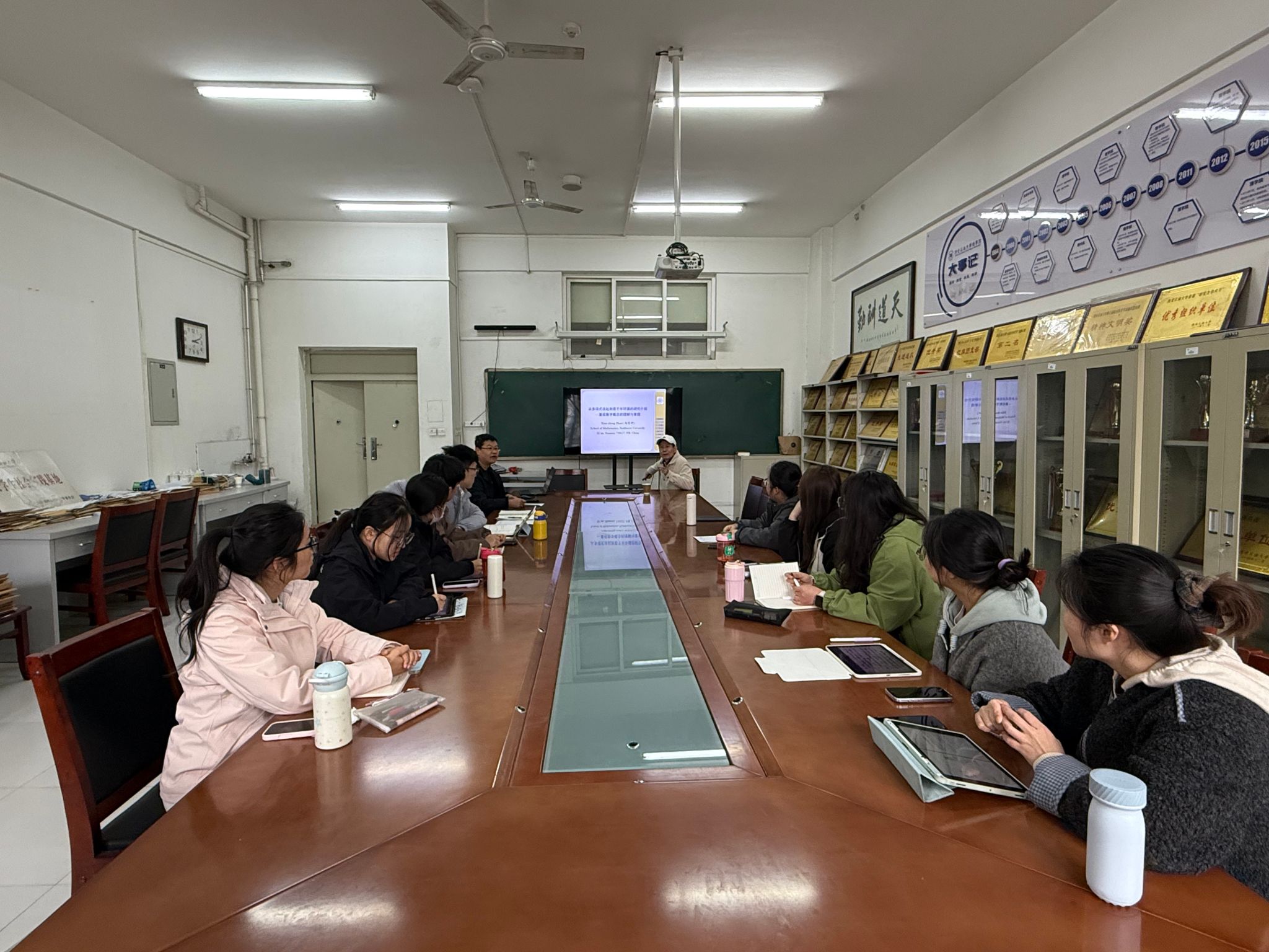 趙憲鐘教授從多項(xiàng)式談起,他強(qiáng)調(diào)數(shù)學(xué)概念的本質(zhì)屬性,通過多項(xiàng)式案例說明需明確對(duì)象特征(如次數(shù)、系數(shù))、運(yùn)算規(guī)則及結(jié)構(gòu)關(guān)系,主張以"形式表達(dá)式"和"函數(shù)映射"雙重視角理解數(shù)學(xué)對(duì)象。在學(xué)習(xí)方法上要求學(xué)生掌握基本初等函數(shù)復(fù)合規(guī)則,理解導(dǎo)數(shù)運(yùn)算法則的系統(tǒng)性,強(qiáng)調(diào)對(duì)數(shù)學(xué)概念的深度理解而非機(jī)械記憶。他從社會(huì)、行業(yè)、企業(yè)等多個(gè)層面分析了數(shù)學(xué)類專業(yè)研究生當(dāng)前的就業(yè)現(xiàn)狀,結(jié)合國家宏觀經(jīng)濟(jì)結(jié)構(gòu)調(diào)整、行業(yè)專業(yè)新變化及政府的就業(yè)創(chuàng)業(yè)幫扶政策等對(duì)未來2-3年的就業(yè)形勢(shì)進(jìn)行了研判,并分別就研究生就業(yè)和考博針對(duì)性地制定了兩條職業(yè)生涯規(guī)劃措施。對(duì)于就業(yè),他依次對(duì)考公、國有企業(yè)、民營企業(yè)優(yōu)缺點(diǎn)進(jìn)行了介紹,結(jié)合學(xué)生個(gè)體性格、能力等差異,分門別類進(jìn)行了指導(dǎo)和引導(dǎo),并對(duì)學(xué)生課外科技競(jìng)賽、英語四六級(jí)及計(jì)算機(jī)等級(jí)考試等提出了明確要求;對(duì)于考博,趙教授從目標(biāo)院校及專業(yè)選擇、申請(qǐng)報(bào)考材料準(zhǔn)備、筆試面試技巧等方面進(jìn)行了分析和指導(dǎo),并進(jìn)行了系統(tǒng)講解。他講到,數(shù)學(xué)類研究生的職業(yè)選擇方向多樣,涵蓋了數(shù)據(jù)科學(xué)、金融工程、人工智能、保險(xiǎn)精算和教育科研等多個(gè)領(lǐng)域,每個(gè)方向都有著廣闊的發(fā)展前景和豐厚的回報(bào)。在做出選擇時(shí),建議結(jié)合自身興趣和特長,深入了解各領(lǐng)域的發(fā)展趨勢(shì),制定合理的職業(yè)規(guī)劃。相信無論選擇哪條道路,只要堅(jiān)持不懈地努力,都能在未來收獲成功。