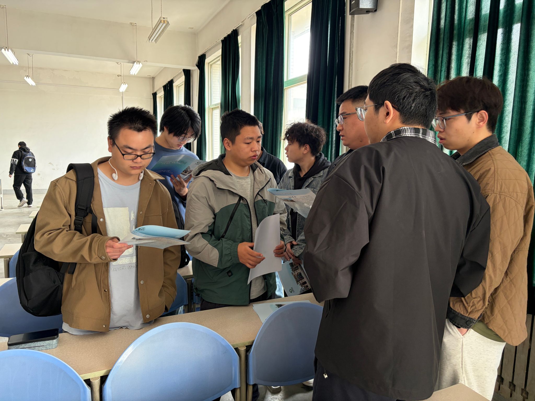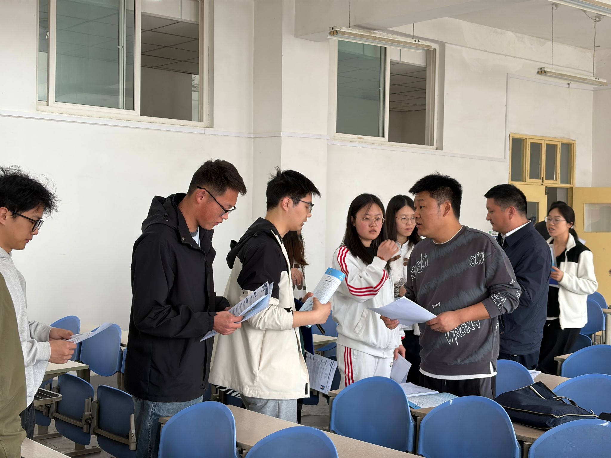 宣講結束后,同學們攜帶精心準備的簡歷及相關材料,結合自身專業(yè)方向和職業(yè)規(guī)劃,與招聘團隊進行深入交流,積極爭取心儀崗位。翟良良、史小博兩位同志耐心解答了同學們關于崗位需求、工作內(nèi)容、實習安排、職業(yè)發(fā)展路徑等方面的問題,逐一細致回應并提出專業(yè)建議,現(xiàn)場交流氛圍熱烈而有序。