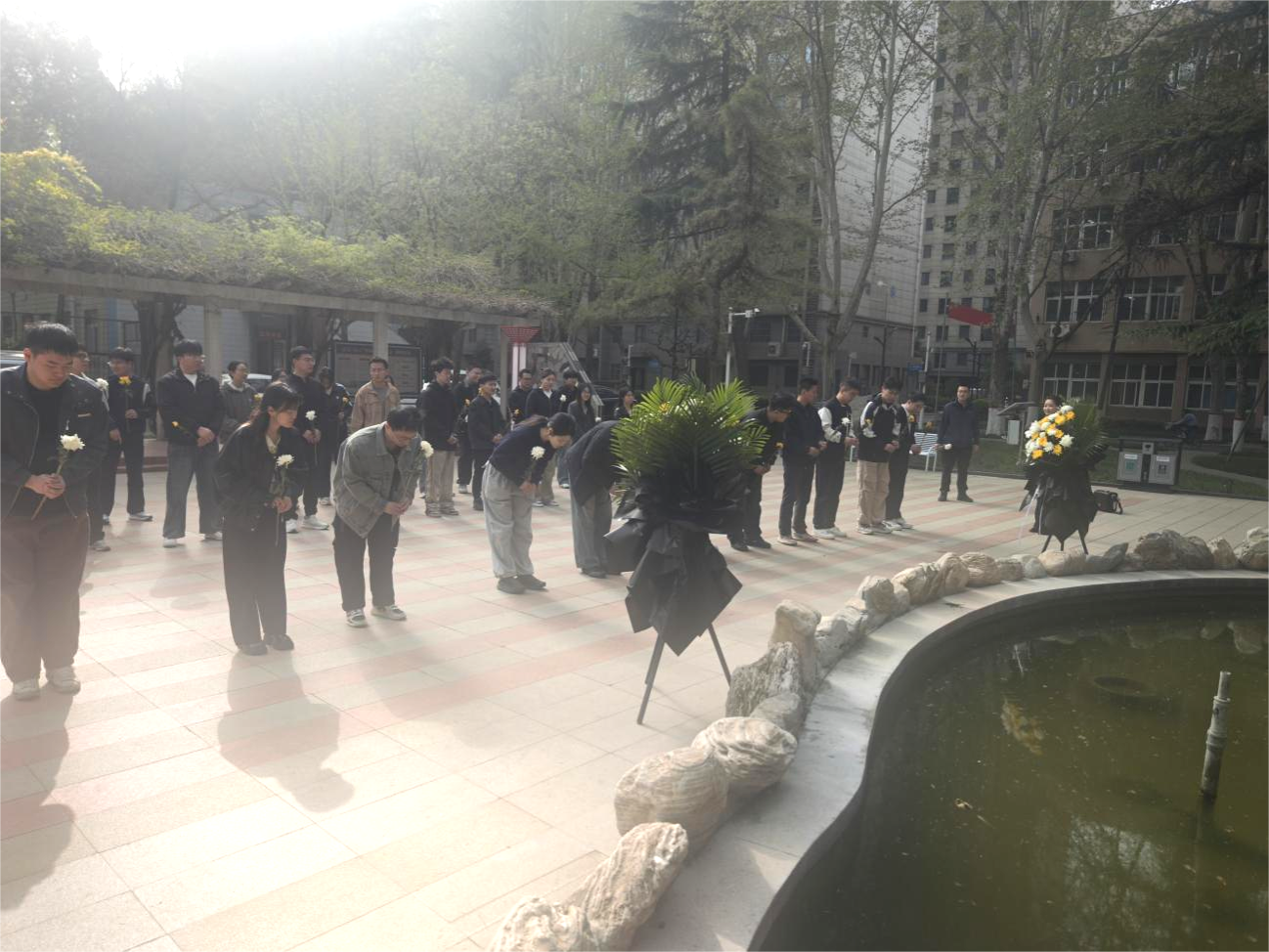敬獻鮮花寄深情,鞠躬行禮敬忠魂