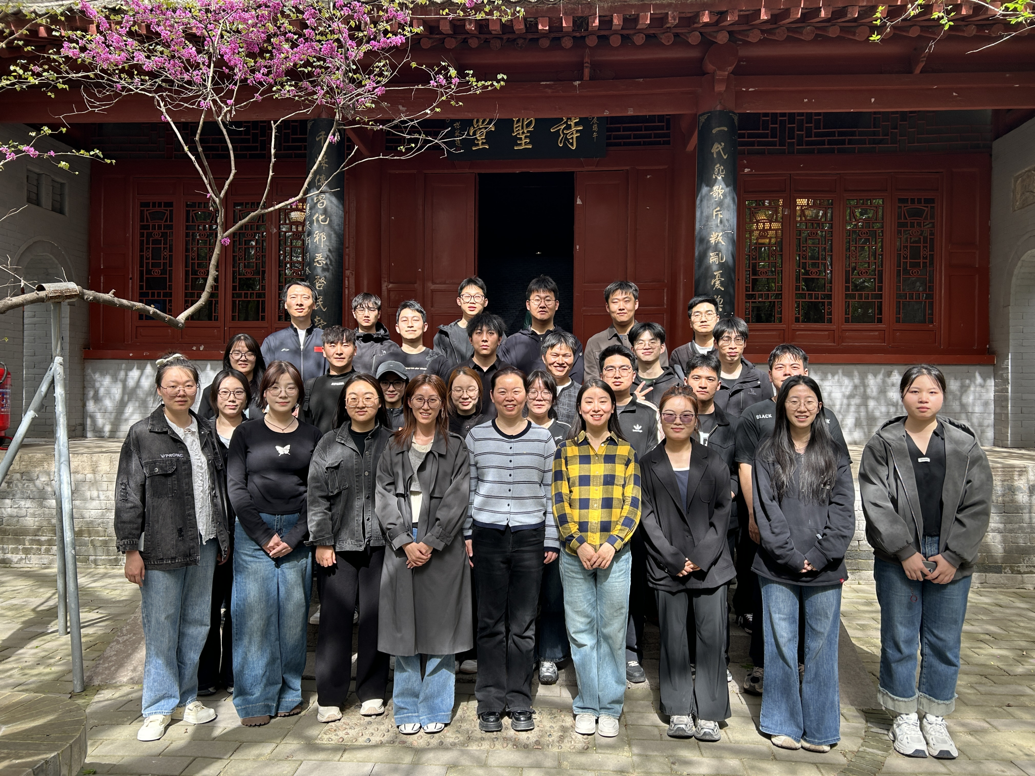杜公祠作為紀(jì)念詩圣杜甫的文化地標(biāo),承載著厚重的歷史文脈?;顒?dòng)中,同學(xué)們依次參觀了祠內(nèi)殿宇、展室與碑刻,聆聽杜甫生平事跡與詩歌創(chuàng)作歷程,品讀經(jīng)典詩篇,深切感受其憂國憂民、堅(jiān)守理想的高尚風(fēng)骨,領(lǐng)略傳統(tǒng)詩詞的文化魅力。參觀現(xiàn)場(chǎng),同學(xué)們結(jié)合專業(yè)科研與母校精神交流感悟,即興賦詞抒懷。更有學(xué)子以詩禮贊母校,將詩圣情懷與西石大“好學(xué)力行、自強(qiáng)不息”的校訓(xùn)精神相融,抒發(fā)報(bào)國科研之志。