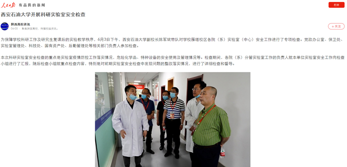 【人民日報APP】西安石油大學(xué)開展科研實(shí)驗(yàn)室安全檢查