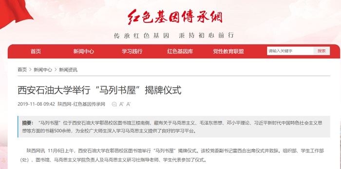 【紅色基因傳承網(wǎng)】西安石油大學(xué)舉行“馬列書(shū)屋”揭牌儀式