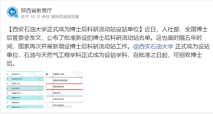 【省教育廳微博】西安石油大學正式成為博士后科研流動站設(shè)站單位