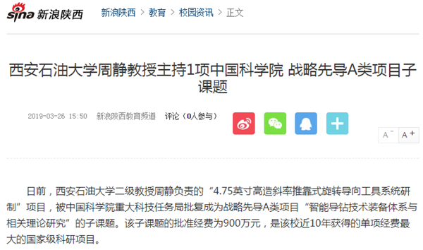 【新浪網(wǎng)】西安石油大學(xué)周靜教授主持1項(xiàng)中國(guó)科學(xué)院戰(zhàn)略先導(dǎo)A類(lèi)項(xiàng)目子課題