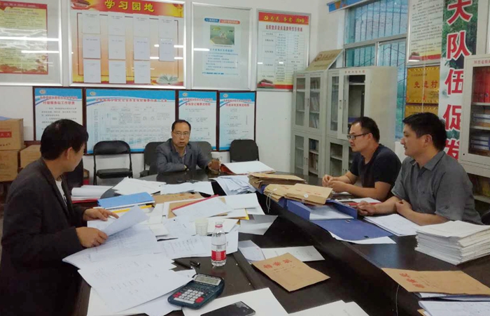 侯陽(右二)在堅(jiān)固村整理精準(zhǔn)幫扶臺賬