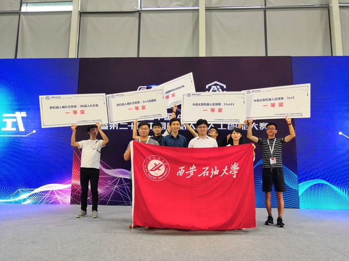 從2007年開始,足球機器人創(chuàng)新實踐基地先后組織15屆學生,參與了20次國內(nèi)、國際大賽。足球機器人創(chuàng)新實踐基地王瀟瀟老師說:“整個機器人比賽過程中決策系統(tǒng)起到了至關(guān)重要的作用,每個機器人在不同時刻都有不同的分工,每個機器人要在賽場上根據(jù)情況隨時做好角色轉(zhuǎn)換和攻防轉(zhuǎn)換。在攻防策略中傳球、帶球、繞球等每一個小動作都要經(jīng)過精心的設(shè)計和大量的實驗。經(jīng)過14年的經(jīng)驗積累和大量實驗,目前整個機器人系統(tǒng)中圖像處理速度和質(zhì)量處于世界領(lǐng)先水平。”足球機器人創(chuàng)新實踐基地組織學生參加過5vs5半自主型足球賽、11vs11半自型足球賽、3vs1追捕賽、3機器人隊形賽、小型輪式機器人避障和軌跡規(guī)劃賽和小型輪式機器人技術(shù)挑戰(zhàn)賽等六項實體機器人比賽項目,以及FIRA仿真型5vs5機器人足球賽、FIRA仿真型11vs11機器人足球賽、微軟(MS)仿真型5vs5輪式機器人足球賽、微軟(MS)仿真型11vs11輪式機器人足球賽、FIRA仿真挑戰(zhàn)賽和FIRA仿真類人賽等六項仿真比賽項目。曾在國際賽場上與韓國、斯洛伐克、新加坡等國家代表隊進行同臺較量,我校小型半自主機器人11vs11項目曾獲機器人足球世界杯冠軍。14年以來,共計獲得冠、亞、季軍50項,獲得獎杯26座,獲獎學生約400人次,累計1200人參加機器人足球創(chuàng)新活動。