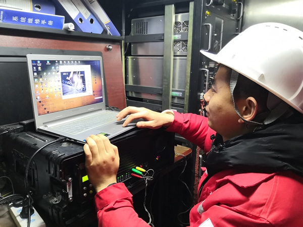 2019年5月,中海油33平臺(tái)承鉆的一口海上油井發(fā)生新井套漏,情況不明、責(zé)任不清,工程進(jìn)度受阻。該平臺(tái)是全球最大的座底式海上鉆井平臺(tái),作業(yè)日費(fèi)上百萬元,鉆一口井價(jià)值不菲,新井套破,事態(tài)嚴(yán)重。VideoLog團(tuán)隊(duì)嚴(yán)正娟、呂源使用了各種交通工具,以最短時(shí)間趕赴現(xiàn)場。 5月26日他們抵達(dá)平臺(tái),開始測井作業(yè)。該井管徑較大,井液渾濁,井下缺少參照物,視線不良,給檢測帶來極大困難。通過清水循環(huán)洗井和7個(gè)多小時(shí)的耐心找尋,終于在井深1238m處找到套破裂縫,確認(rèn)了事故原因,給后續(xù)處理措施提供了可靠依據(jù)。