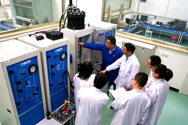 談到近年來的主要工作,周德勝教授更是打開了話匣子。他拿出相關(guān)資料為記者介紹:“石油與天然氣工程學(xué)科是陜西省重點(diǎn)學(xué)科、陜西省特色優(yōu)勢一級學(xué)科。實(shí)驗(yàn)中心作為石油工程學(xué)院教師開展科研工作的重要基地,為學(xué)科發(fā)展和高水平大學(xué)建設(shè)工作發(fā)揮著重要的支撐作用。近年來,依托于實(shí)驗(yàn)中心的大型儀器共享平臺,石油工程學(xué)院在相關(guān)研究方向上共承擔(dān)國家級科研項(xiàng)目25項(xiàng)、省部級科研項(xiàng)目24項(xiàng)、企業(yè)合作科研項(xiàng)目259項(xiàng),科研經(jīng)費(fèi)達(dá)到2.4億元。獲國家授權(quán)發(fā)明專利45項(xiàng)、實(shí)用新型專利16項(xiàng)、軟件著作權(quán)15項(xiàng)。出版專著21部,在核心刊物以上發(fā)表學(xué)術(shù)論文171篇(三大檢索收錄81篇)。獲國家科學(xué)技術(shù)進(jìn)步一等獎1項(xiàng)、二等獎2項(xiàng),省部級科技一等獎4項(xiàng)、二等獎1項(xiàng)、三等獎2項(xiàng)。2018年5月10日,國務(wù)院學(xué)位委員會印發(fā)了《關(guān)于下達(dá)2017年審核增列的博士、碩士學(xué)位授予單位及其學(xué)位授權(quán)點(diǎn)名單的通知》,西安石油大學(xué)正式成為博士學(xué)位授予單位,石油與天然氣工程獲批一級學(xué)科博士學(xué)位授權(quán)點(diǎn)。實(shí)驗(yàn)中心憑借先進(jìn)的硬件條件和驕人的科研業(yè)績,為學(xué)?!瓴ぷ饕舶l(fā)揮了重要的支撐作用?!?/p>