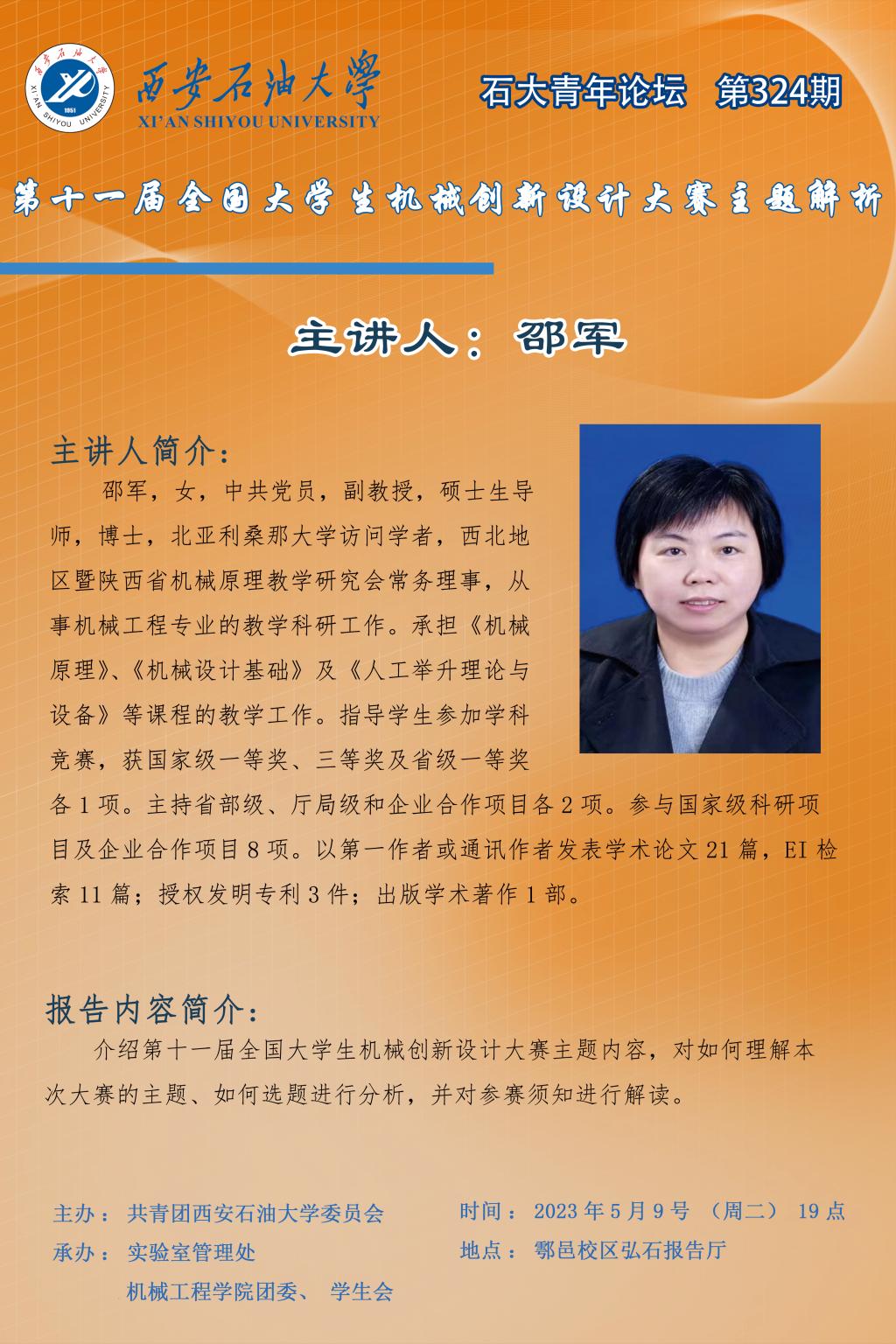 石大青年論壇第324期:第十一屆全國(guó)大學(xué)生機(jī)械創(chuàng)新設(shè)計(jì)大賽主題解析