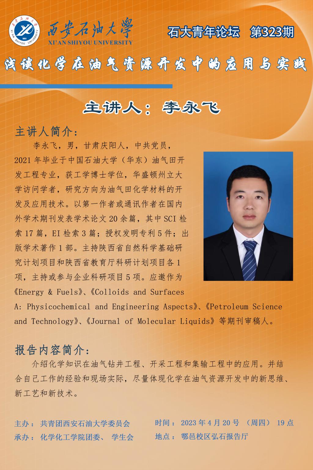 石大青年論壇第323期:淺談化學(xué)在油氣資源開(kāi)發(fā)中的應(yīng)用與實(shí)踐