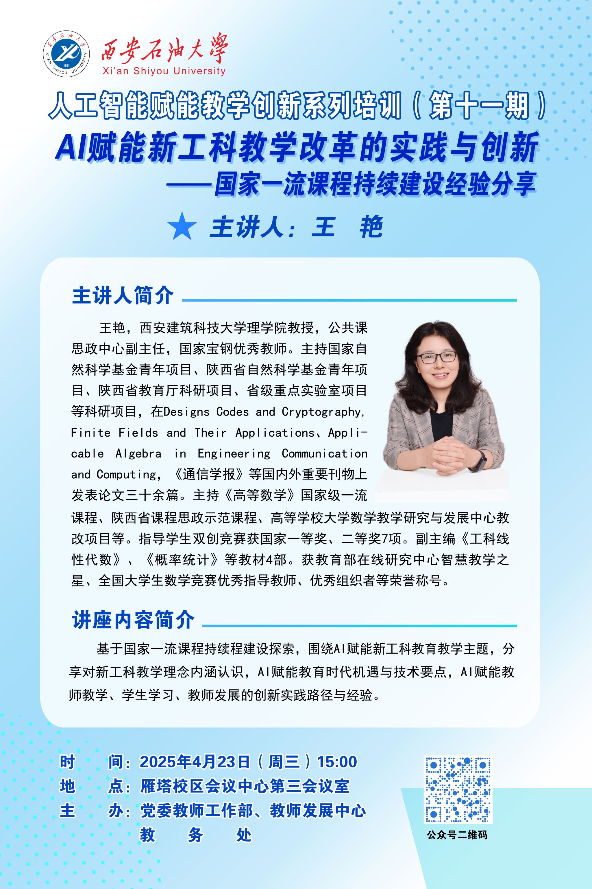 報(bào)告地點(diǎn):雁塔校區(qū)第四會(huì)議室
