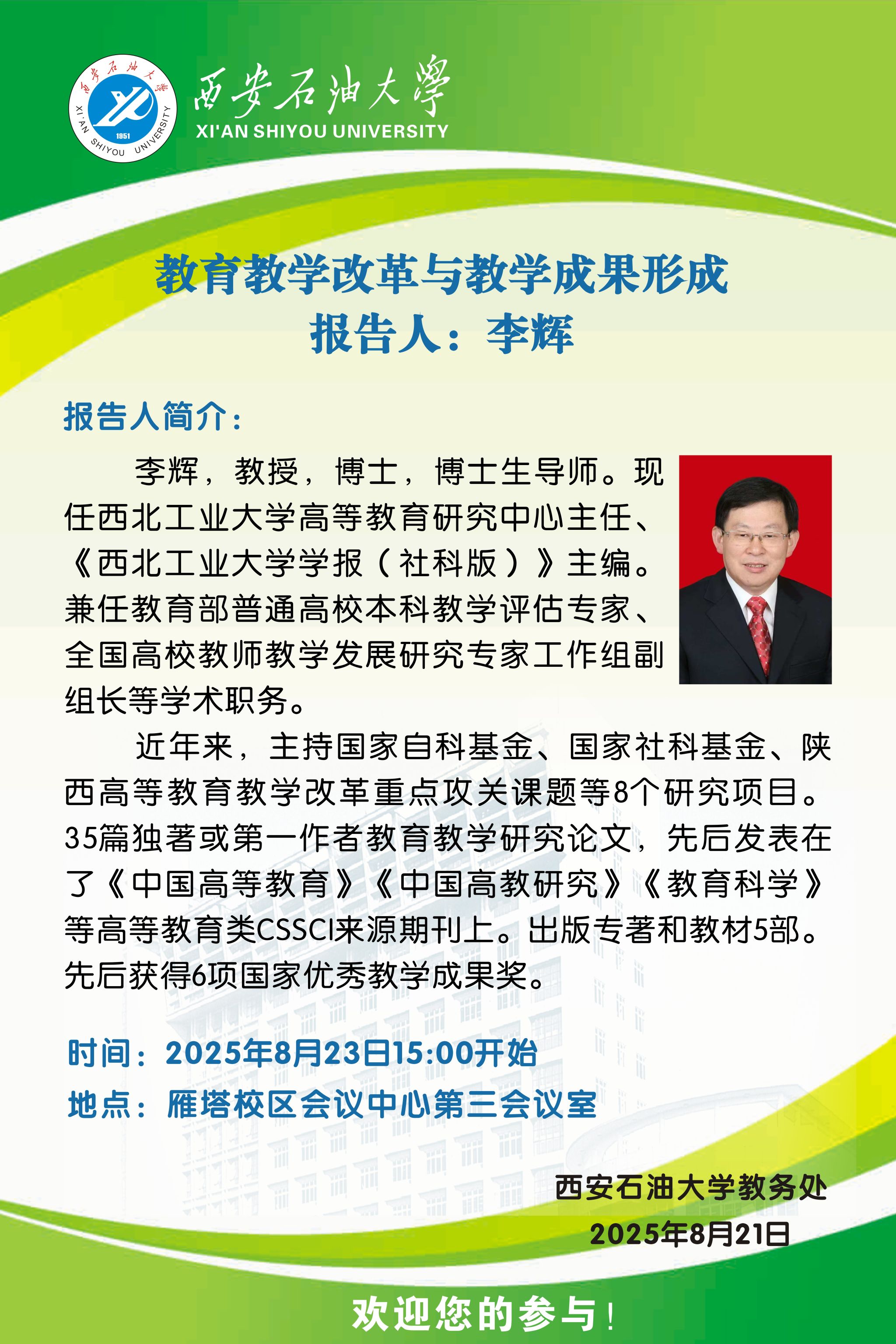 報(bào)告地點(diǎn):雁塔校區(qū)學(xué)術(shù)報(bào)告廳