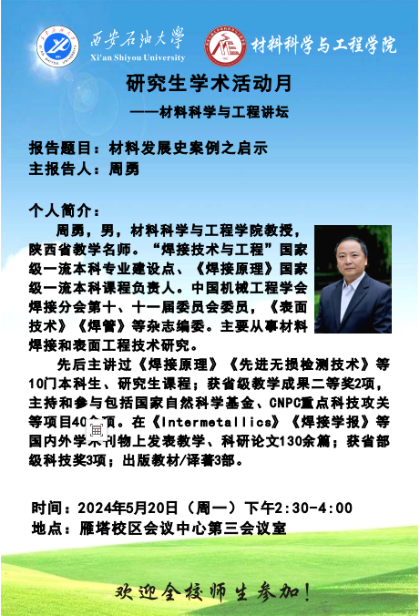 報告地點:西安石油大學(xué)本科招生視頻號 西安石油大學(xué)本科招生B站官方號
